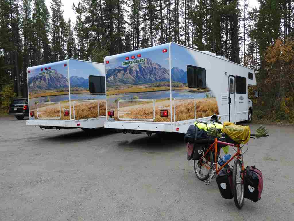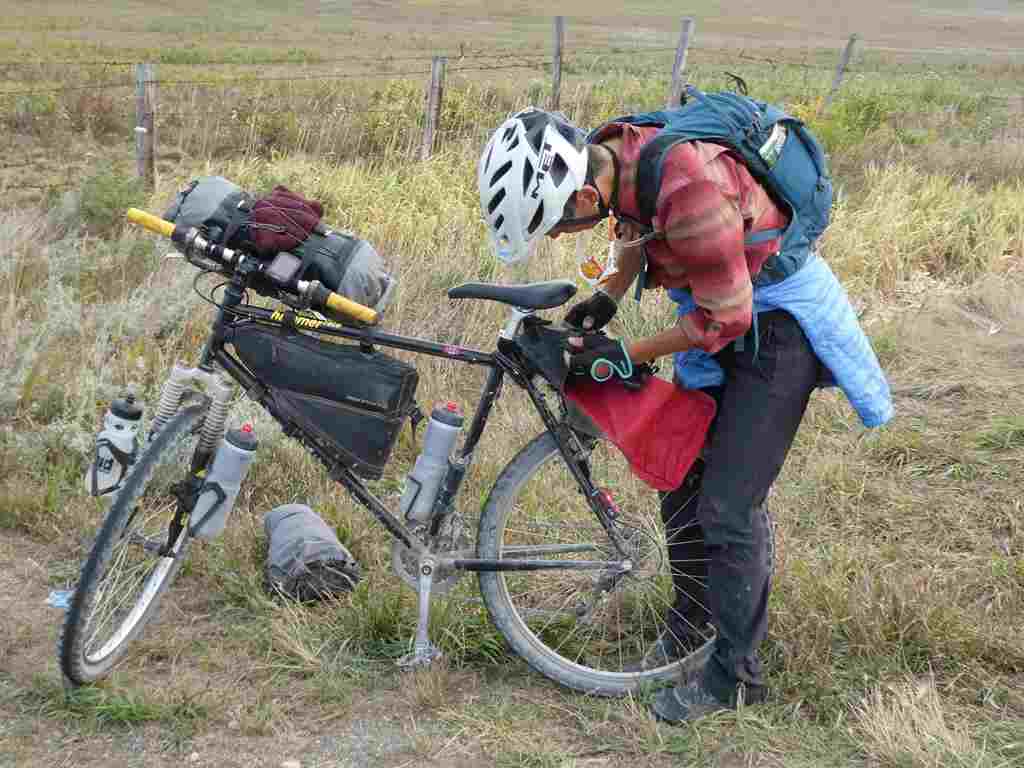 Toutefois j'avais commis l'erreur de partir avec une réserve d'eau insuffisante pour ces 120 km. Et ce qui devait arriver n’arriva ... pas moyen de se ravitailler dans des rochers sans le moindre ruisselet. Il y avait bien la rivière Coldwater qui en plus d'être froide (comme son nom anglais le dit bien) n'était pas très limpide (au contraire de la rivière Clearwater traversée précédemment). Si bien que je tentai de faire comme lors de la traversée du désert d'Atacama au Chili en 2013. Il me suffisait d'agiter derrière moi une bouteille vide pour qu'un camionneur s'arrête et me ravitaille en eau. Cette fois, au Canada, il y eu bien un gentil monsieur qui s'arrêta (il faisait lui aussi du vélo). Mais sa gourde était déjà bien entamée. L'intention était bonne mais insuffisante.