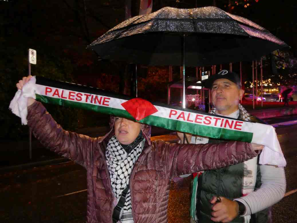 Manifestation à Vancouver sous la pluie le mardi 17 octobre 2023 : comme dans de nombreuses villes